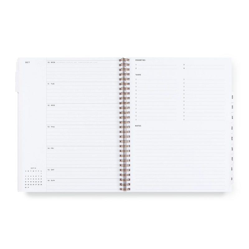 The signature planner that started it all—the Year Task Planner is back for the academic year. Featuring a multi-view spread with a weekly overview and a full page for list-making and note-taking, laminated tabs for easy navigation, and bound in our durable cotton-blend bookcloth. Ideal for professionals and designers as well as students and parents, the Year Task Planner brings style and structure to your everyday plans.