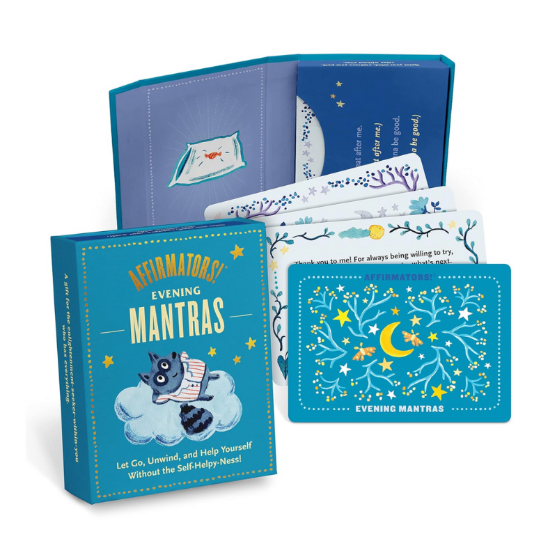 his deck of evening mantras is here to help you chill out, release the day, and stop anxious brain babble in its tracks. Pick a card at random and read it out loud to process the daily hubbub in a healthy, non-stressy sort of way. Repeat as/if/whenever needed! Happier dreams not guaranteed, but 86.5% more probable.