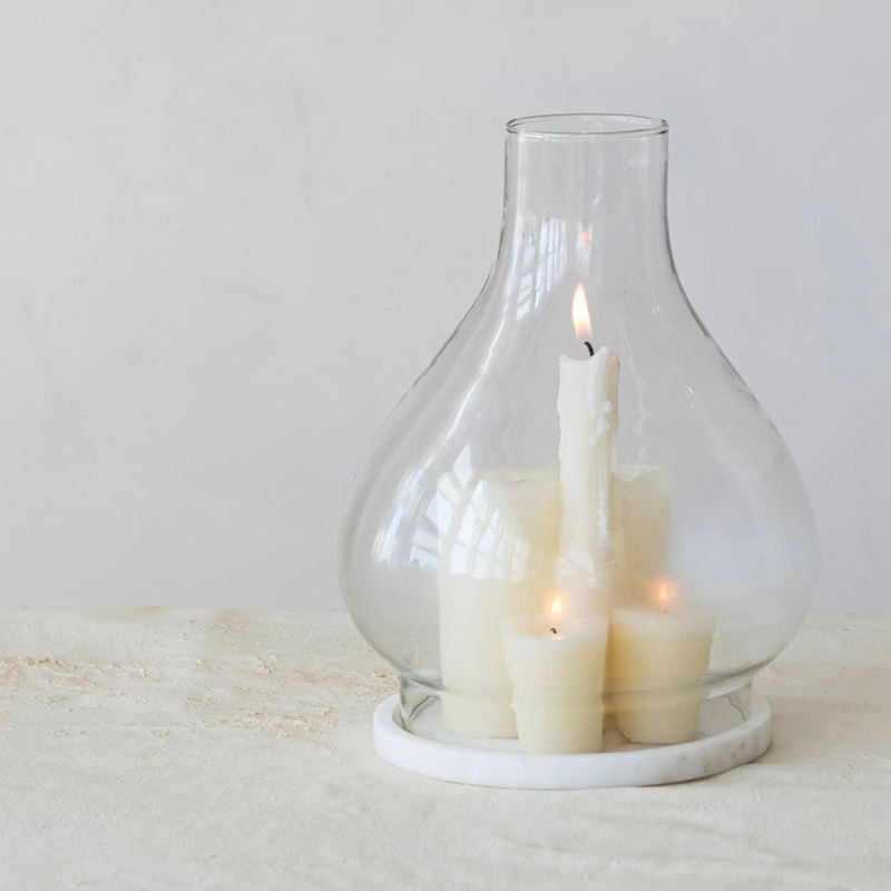 • Glass Hurricane with Marble Base