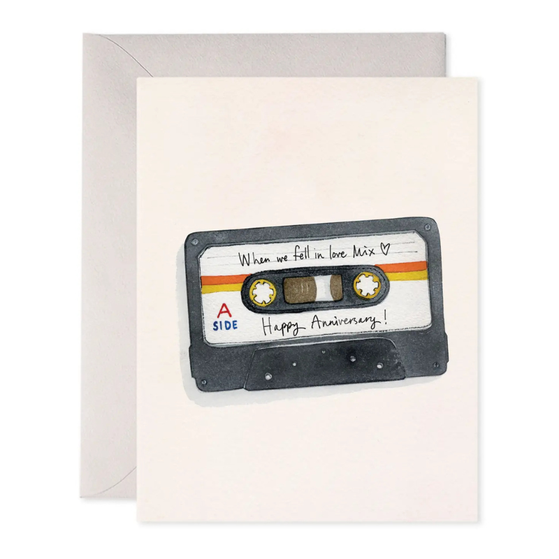 Celebrate love and cherished memories with our Anniversary Mix Tape Greeting Card, featuring a retro-inspired cassette tape illustration with a handwritten label. Perfect for anniversaries, relationship milestones, or simply saying, “You’re my favorite tune,” this card adds a touch of nostalgia to your heartfelt message.
