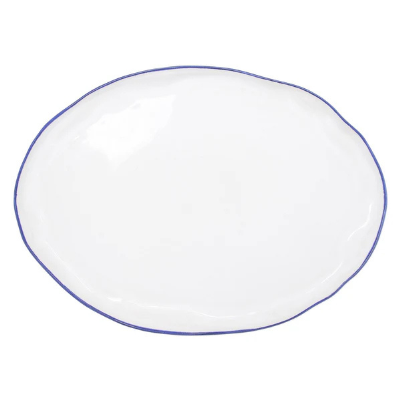 The Aurora Edge Large Oval Platter is handformed from the strongest stoneware in Veneto, Italy. With authentic, unique edges and its ample, easy shape, this serving piece makes a simple and sophisticated statement.
