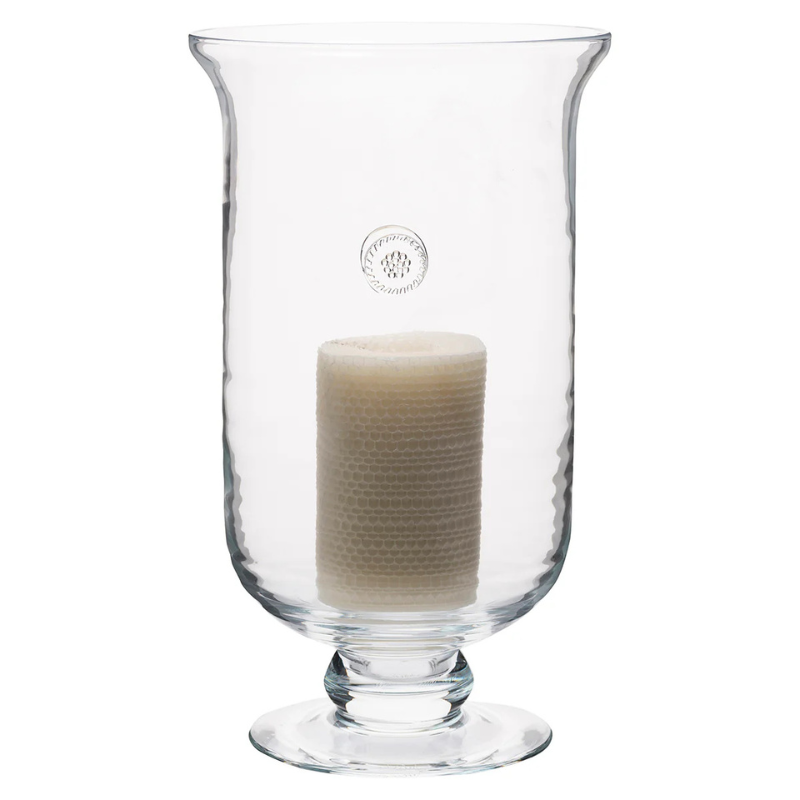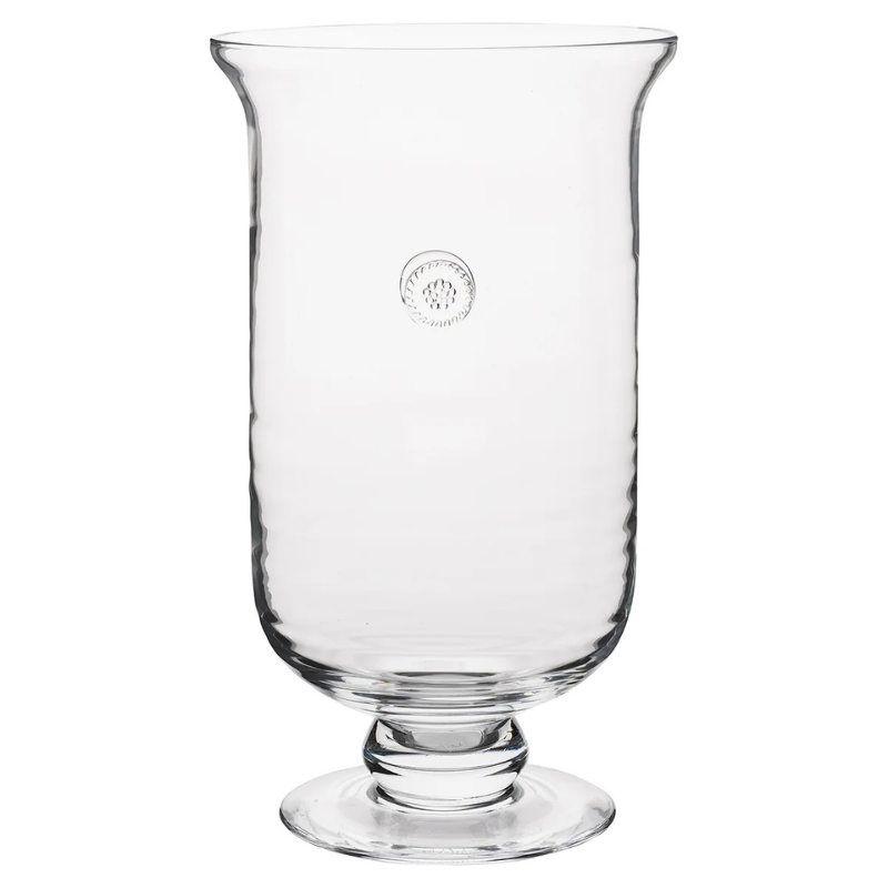 From Juliska's Berry & Thread Collection - Let dancing candlelight set the scene for a romantic night. Emblazoned with their signature medallion, this hurricane is classically styled allowing it to blend with any decor and add just the right amount of sparkle to your soiree. It can also be used as fabulous vase for large arrangements.