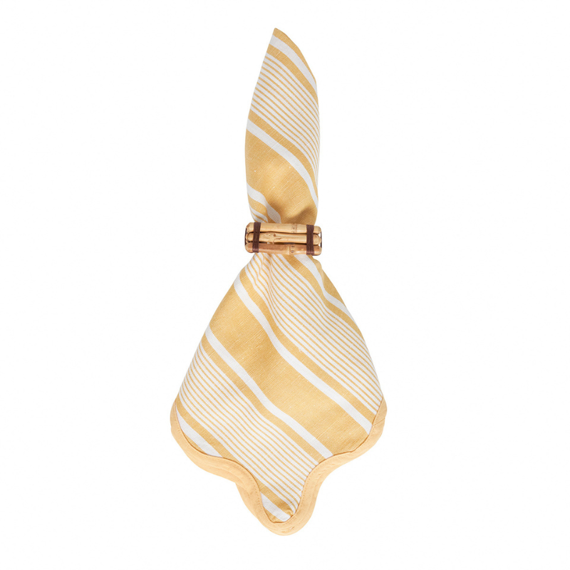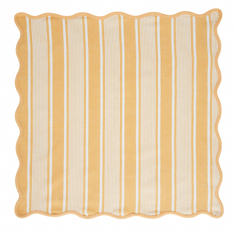 Inspired by idyllic days beside the sea, happy-up any table setting with classic cabana stripes of pure, crisp, breezy linen in candy-colored, sun-drenched hues. Beautifully finished with a scalloped trim for a touch of casual elegance.