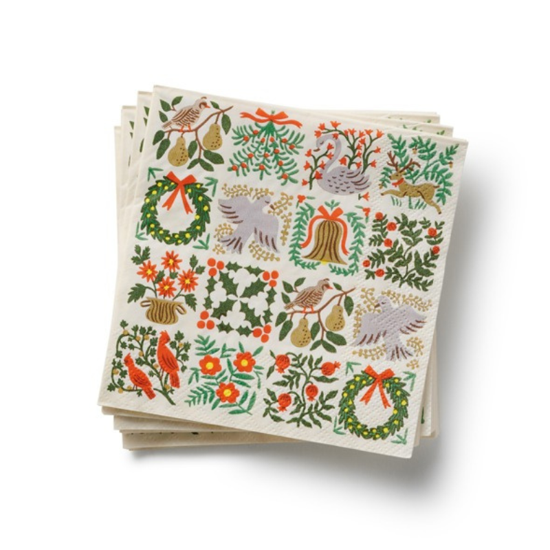 With intricate, Christmastide illustrations, these festive cocktail napkins bring a little extra cheer to the party.