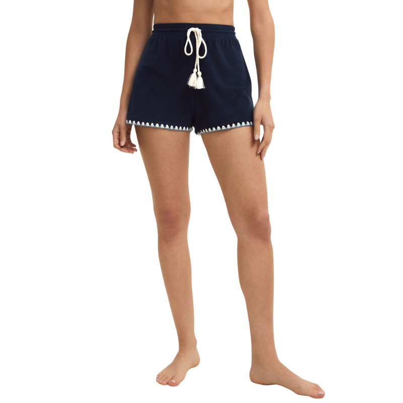 It’s all in the details with these lightweight shorts featuring terry cloth fabric and contrast crochet trim. Whether you’re lounging at home or by the pool, these shorts will make sure you look good doing it. Make it a set with its matching top.
