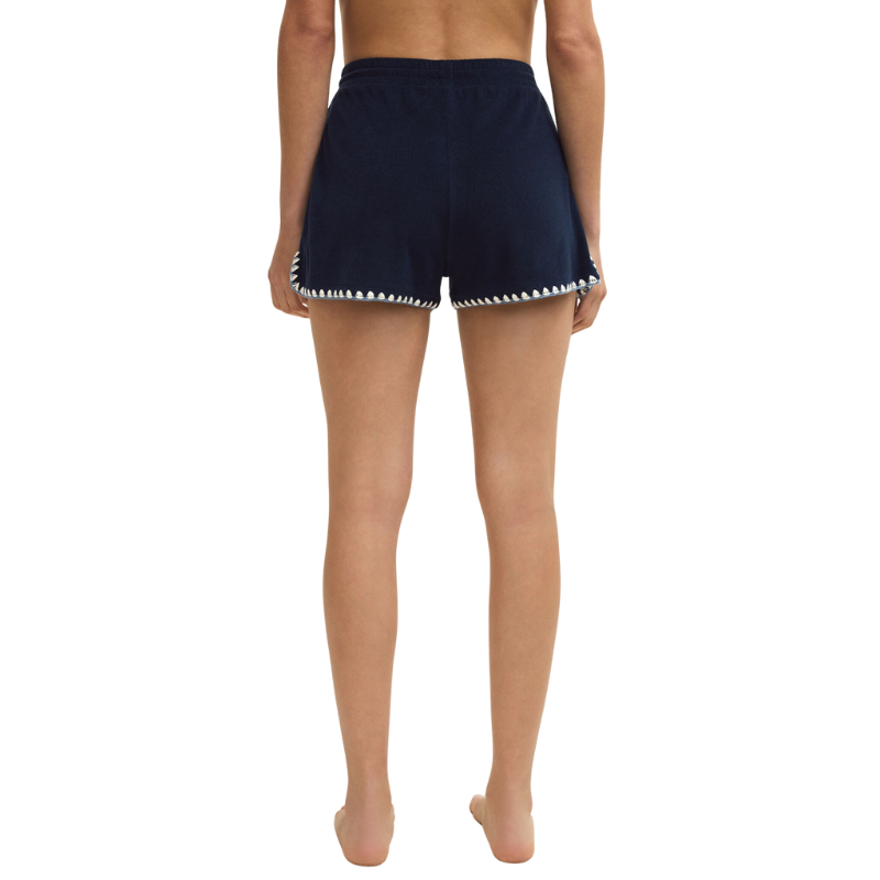 Keep it short and sweet with these terry cloth shorts finished with contrast crochet trim.