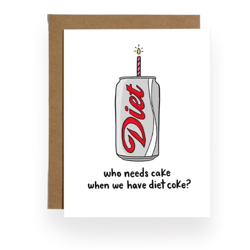 I mean really, who needs cake when we have diet coke? This birthday card is the perfect gift for any DC drinker / enthusiast.