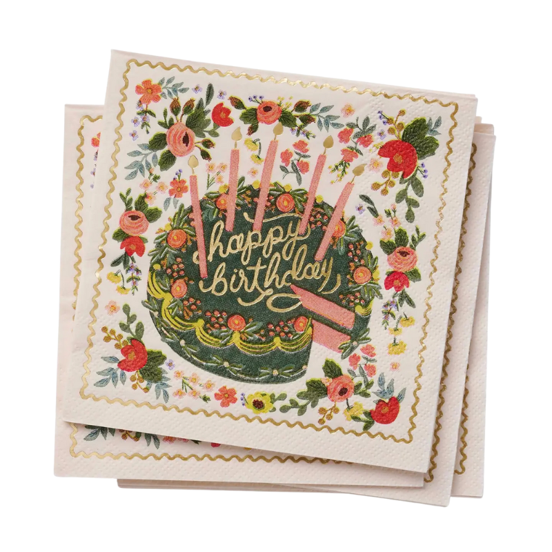 With an illustrated cake on the front and a charming missing slice on the back, these cocktail napkins bring a little extra fun to the party.