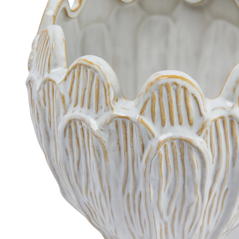 This planter adds French country charm to the space with its lovely design, whether placed on the floor, table, windowsill, or shelf.