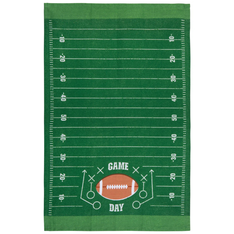 Add life and character to your kitchen with our fun and colorful printed Game Day woven cotton dishtowel. A perfect combination of form and function, this towel will make washing up less of a chore. Kick off football season with flair! Game Day gears up the team to gather on the couch to share a touchdown of tasty treats.