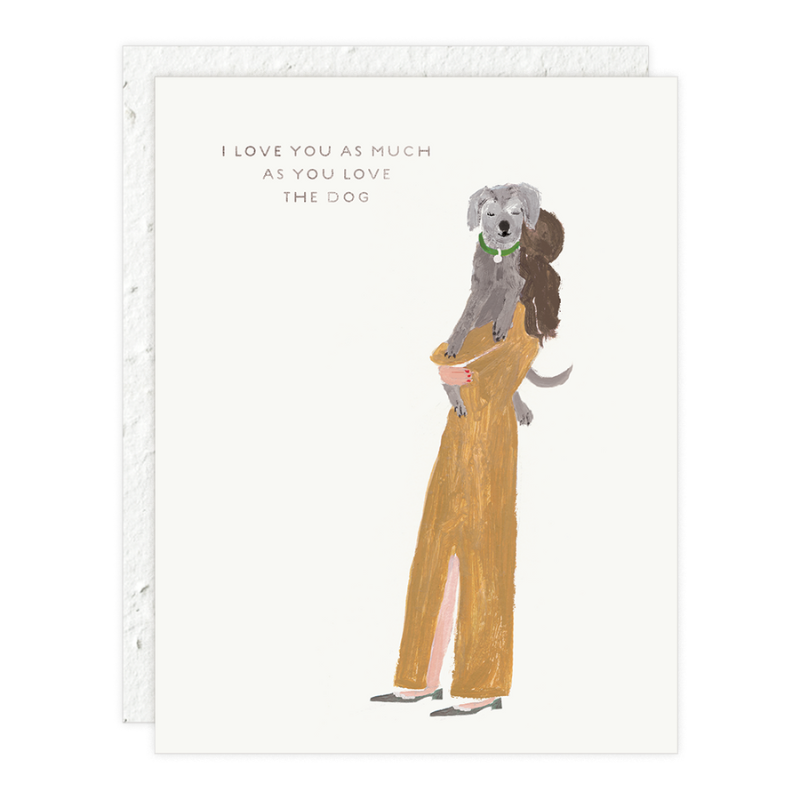 The Girl and Dog Card has a PLANTABLE seed paper envelope which is embedded with wildflower seeds. This seed paper is made of a biodegradable eco-paper created with post-consumer materials - no trees harmed for this paper! When planted, the envelopes compost away leaving only flowers behind. Blank inside, cards are printed on premium paper and are all accented with foil details.