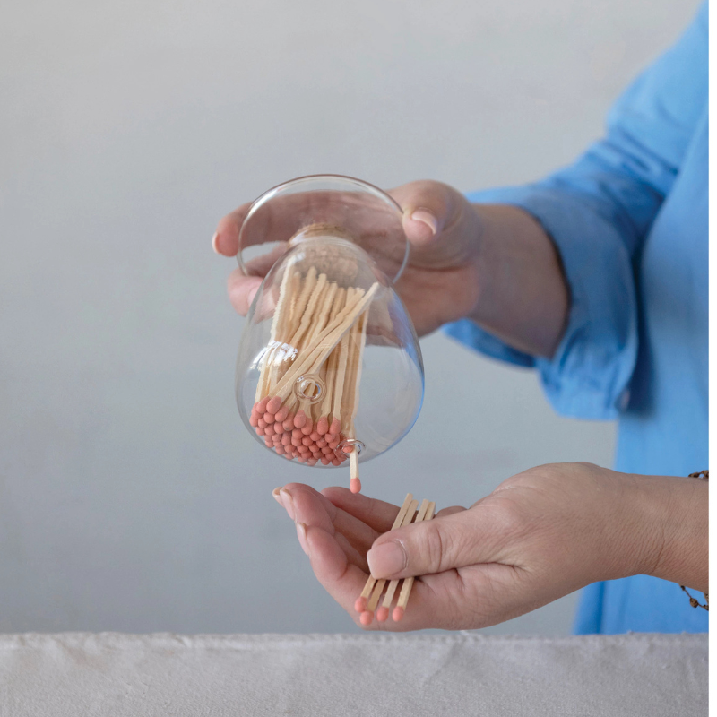 The Glass Match Holder is a handsome way to display your matches, marrying function and style. Fill it with your choice of colorful matchsticks to fit your decor.
