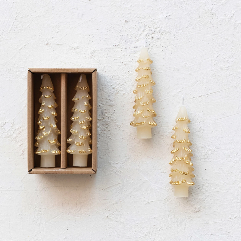 Complete your holiday decor with these beautiful, unscented tree shaped taper candles.