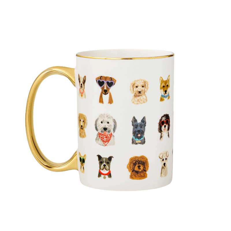 Loyal, loving, and looks good in sunglasses. Celebrate your favorite pup every morning with our Hot Dogs mug. Our porcelain mugs feature illustrated designs and a gilded rim and handle to add a little something special to your favorite beverage.