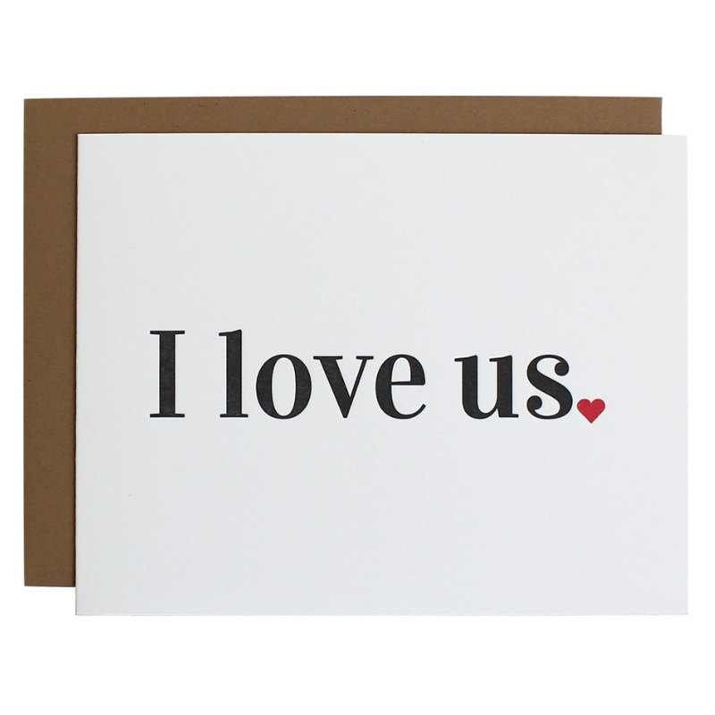"I Love Us" Card is letterpress printed on a vintage printing press.