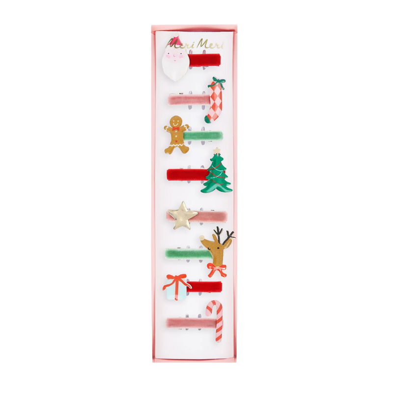 Bet you didn't think Christmas could get any more festive? Well, now you can make your hair look jolly too, with our special hair clips. They're beautifully designed and crafted with luxurious velvet ribbons and fun enamel icons. They're perfect to wear to parties or everyday throughout the holiday, to gift as stocking fillers, or to pop into party bags.