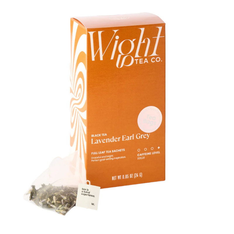 A sophisticated twist on a classic. Caffeinated Earl Grey Black Tea with bold Lavender, now in a convenient compostable pyramid sachet!