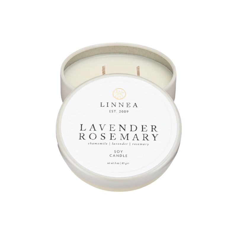 The bestselling Lavender Rosemary Petite 2-wick Candle is a perfect travel companion, housed in a pearlized, lidded tin for easy portability. Designed to illuminate and infuse small spaces with its calming fragrance, this double-wick candle blends chamomile, lavender, and rosemary for a soothing aromatic experience. Once used, repurpose the tin as a jewelry box or keepsake container.