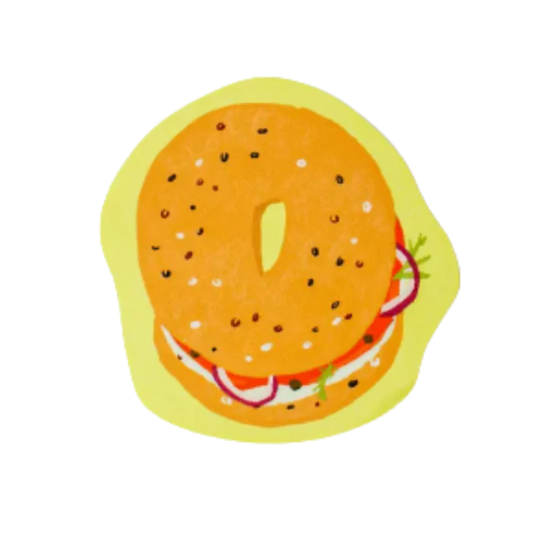 A bold, breakfast-inspired vinyl sticker featuring an illustrated lox bagel design.