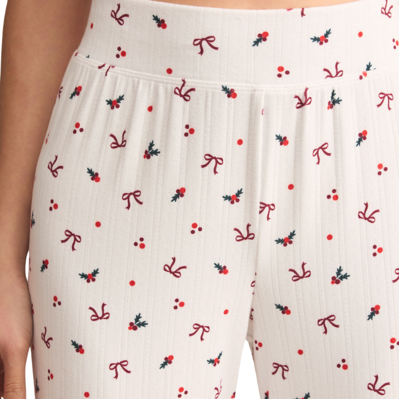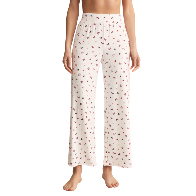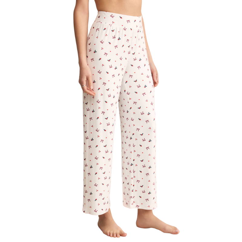 These wide-leg pants feature our silky pointelle knit in a soft seasonal print, complete with a high rise and elastic waistband. A breezy full-length style that’s made for lounging or layering.