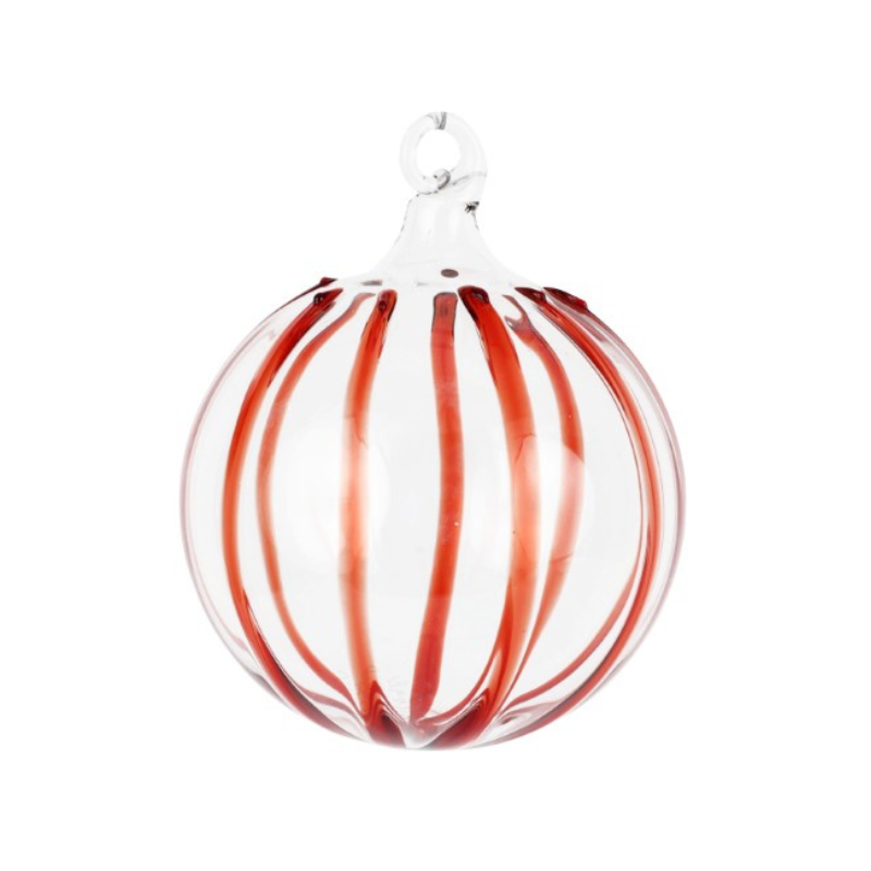 Mouthblown by skilled artisans, the Nuovo Stripe Red Ornament features painterly stripes gliding down each glass, and the result is a fresh and fun addition to your holiday tree.