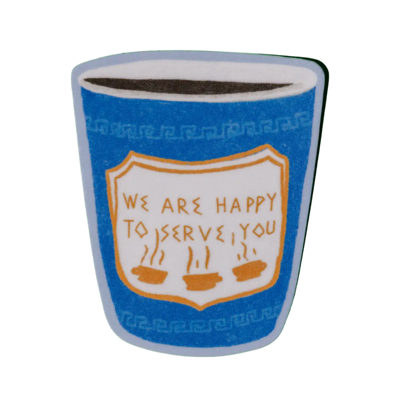 An iconic NYC deli-inspired vinyl sticker featuring the classic New York coffee cup.