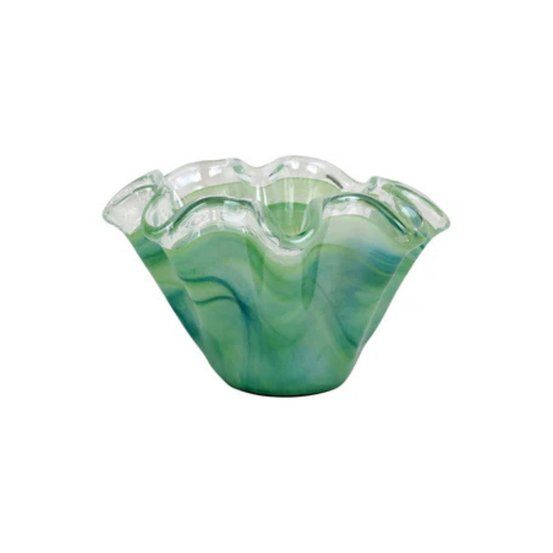 Onda Glass Green Petite Ruffled Bowl