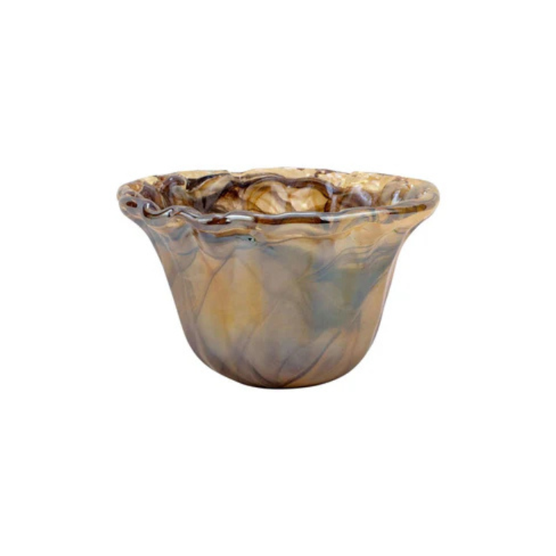 Bring the essence of the Italian coast into your home with the timeless beauty and sophistication of the Onda Glass Tortoiseshell Small Rimmed Bowl. With its graceful, organic shape and rich tortoiseshell tones, it's ideal for serving or as a striking accent piece, and it adds a touch of refined, nature-inspired beauty to any setting.