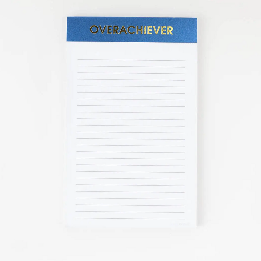 5x8 Notepad with Gold Foil Printed "Overachiever" on Midnight Metallic Blue Header
