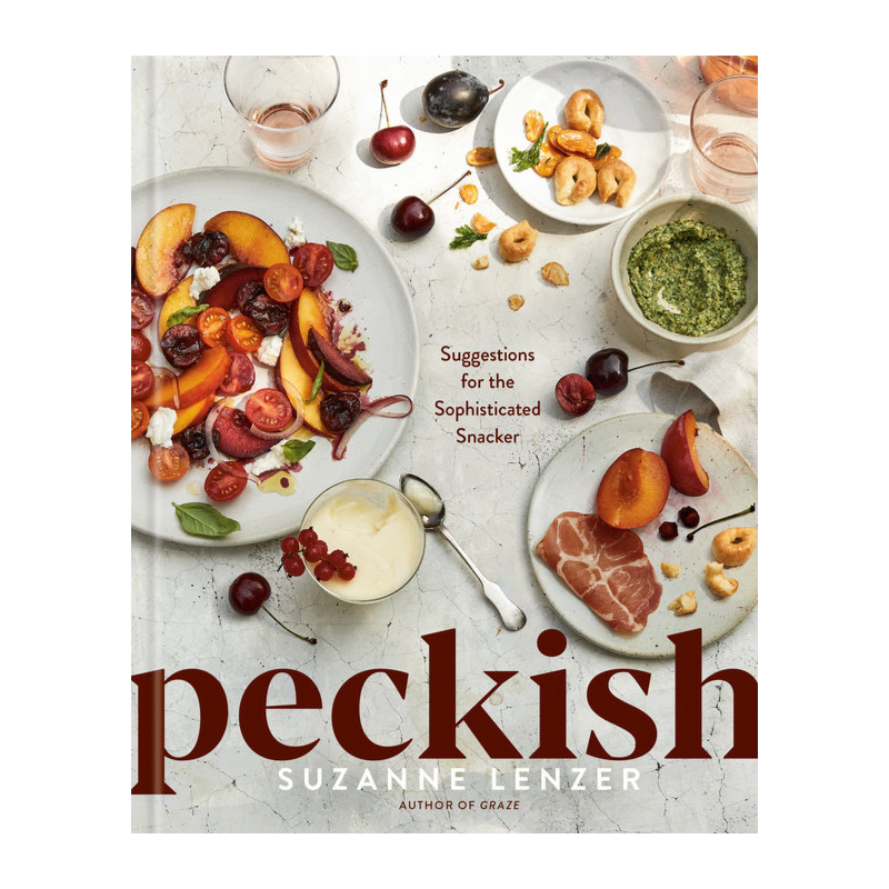 Peckish is divided into charming chapters sorted by vessel—such as On Toast, In Jars, Skewers and Sticks, In Bowls, Napkins Only, and more—so that the home cook can plan their snacking night with ease.