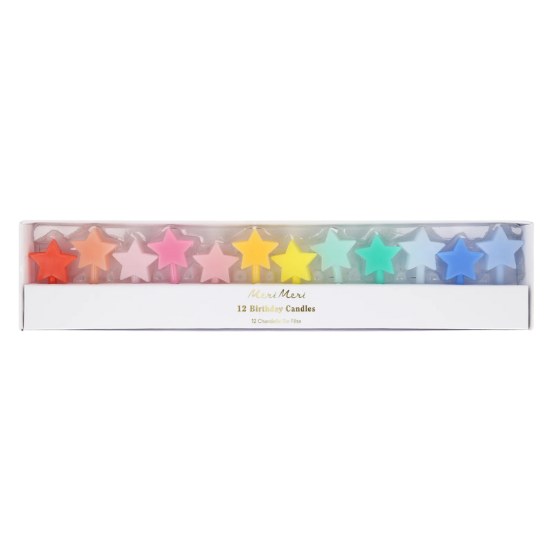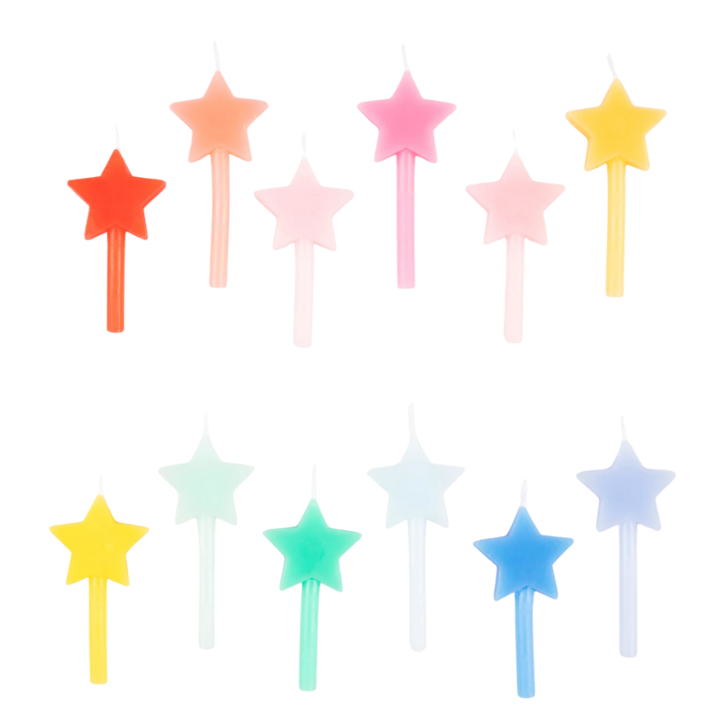 Add a rainbow of color to your cakes with these special star candles. This set of mini candles is all you need for an instant cake decoration, or team with toppers for extra effect. Perfect for a baby shower, bridal shower, birthday cakes or to celebrate an achievement.