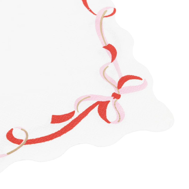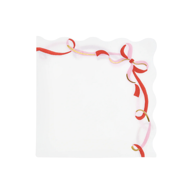 Pink and red ribbon bows are the perfect tableware design for an effortlessly chic Christmas table. The rich warm red brings classic festive charm, the soft pink and shiny gold foil accents give a contemporary twist, and the bow design adds fashionable flair. These large paper Christmas napkins, with wonderful wavy edges, are guaranteed to make your table look vibrant and stylish.