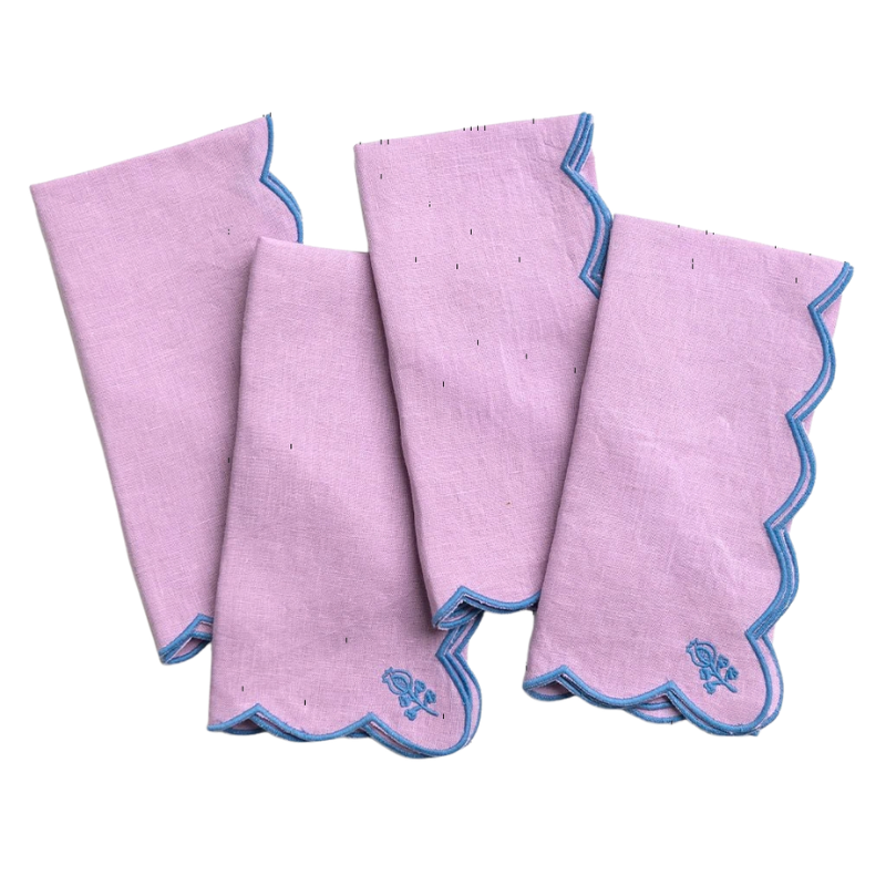 Elegant, versatile, and full of thoughtful detail, the Scalloped Buti Embroidered Linen Napkins bring an elevated finish to any table. Crafted from 100% linen, each napkin features delicate buti-inspired embroidery and a softly scalloped edge, finished in a contrasting thread color — a subtle statement that adds an extra layer of dimension.