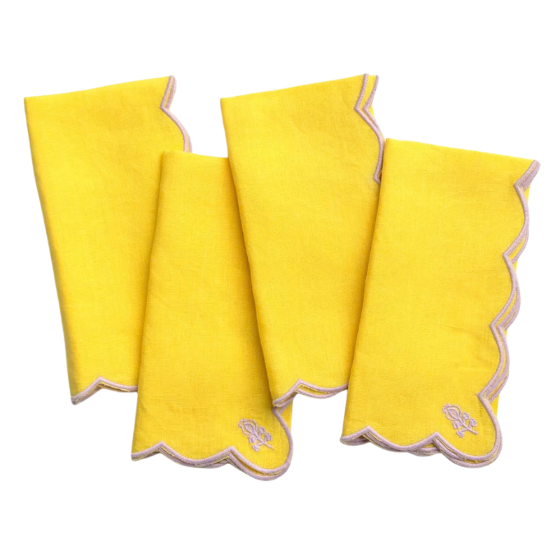 Elegant, versatile, and full of thoughtful detail, the Scalloped Buti Embroidered Linen Napkins bring an elevated finish to any table. Crafted from 100% linen, each napkin features delicate buti-inspired embroidery and a softly scalloped edge, finished in a contrasting thread color — a subtle statement that adds an extra layer of dimension.