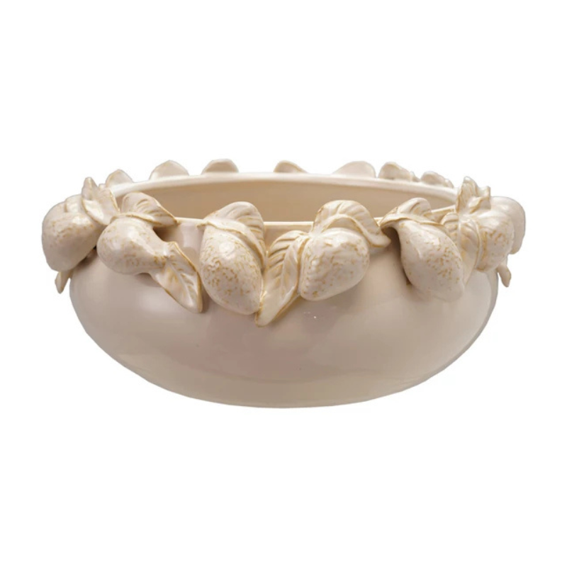 • Cream Color Stoneware Bowl w/ 3D Lemons on Rim