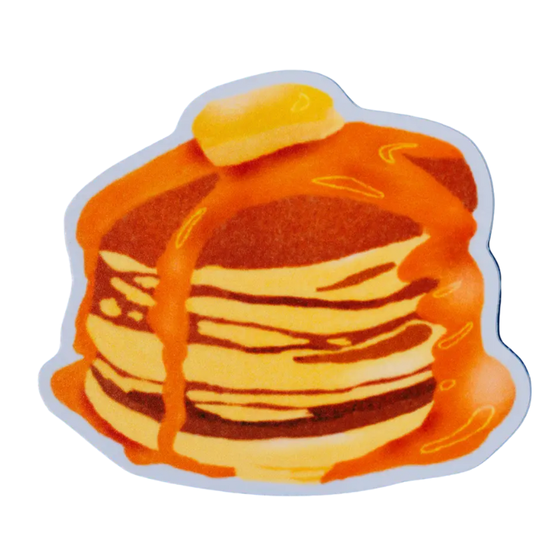 A fun breakfast-inspired vinyl sticker featuring an illustrated short stack pancake design.