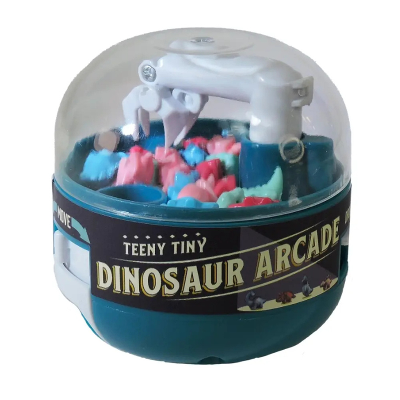 Bring arcade excitement to your fingertips with the Tiny Toys Teeny Tiny Dinosaur Arcade, a miniature claw machine that delivers big-time fun in a tiny package! This handheld dino arcade set includes 20 collectible mini dinosaurs and a working claw mechanism that lets you grab, move, and drop each prehistoric prize into the slot below.