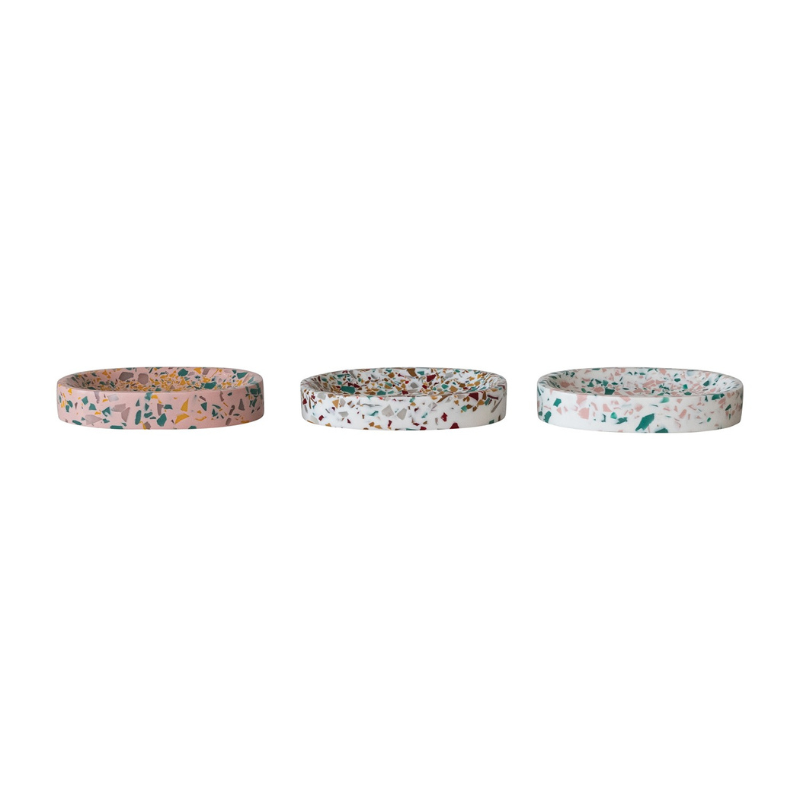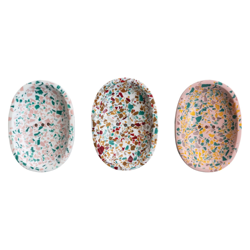 Fun speckled colors make these soap dishes  a fun addition besides your sink.