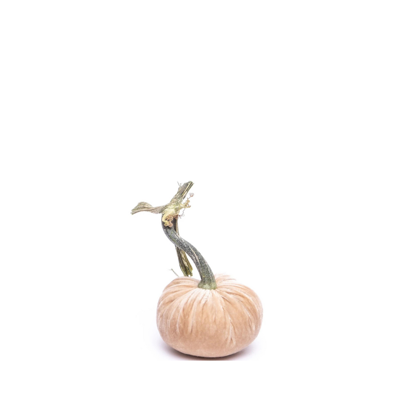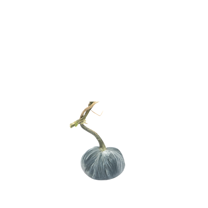 The original silk velvet pumpkins! Handmade in Oregon by artisans, each piece is hand cut and sewn to order and finished with a natural stem.