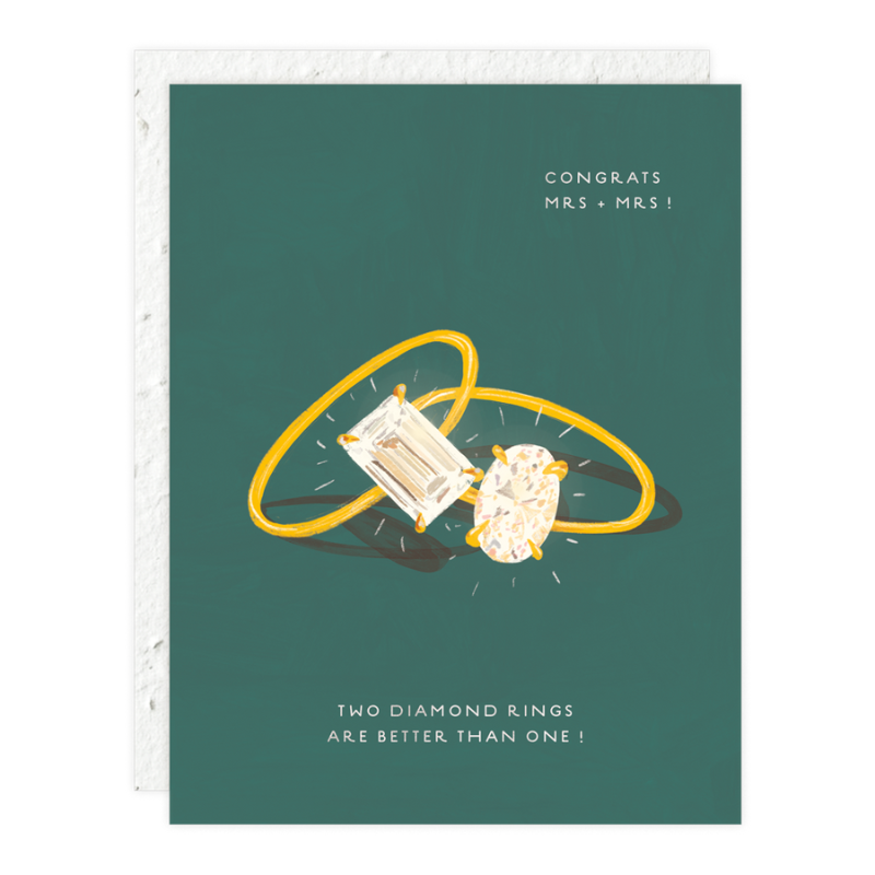 Wedding Rings - Wedding + Engagement Card has a PLANTABLE seed paper envelope which is embedded with wildflower seeds. This seed paper is made of a biodegradable eco-paper created with post-consumer materials - no trees harmed for this paper! When planted, the envelopes compost away leaving only flowers behind. Blank inside, cards are printed on premium paper and are all accented with foil details.