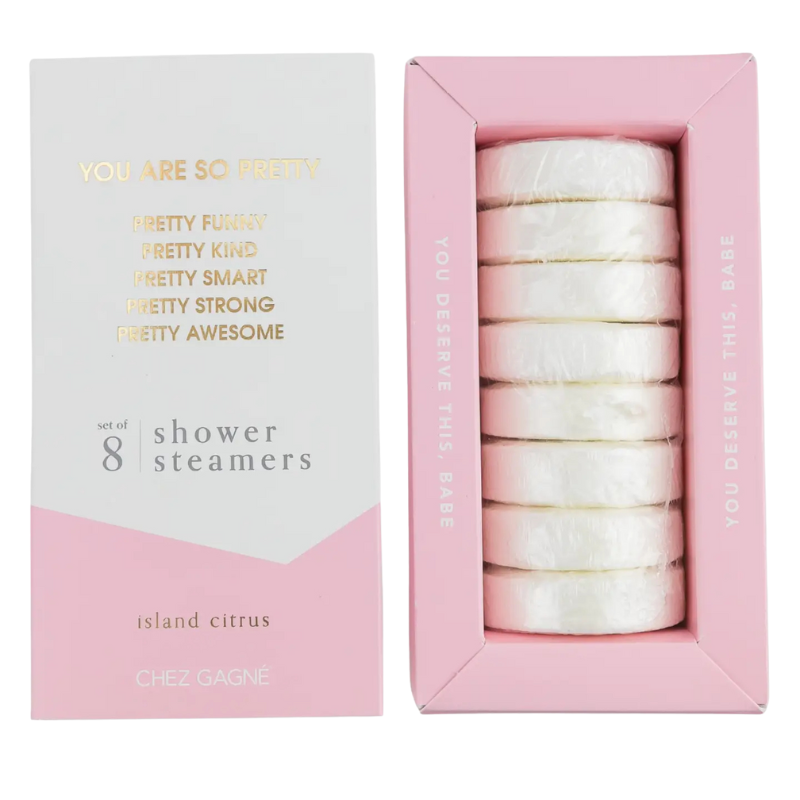 The You Are So Pretty Island Citrus Shower Steamers turn any shower into a tropical self-care escape. Infused with essential oils, these steamers bring the sweet, sunny scent of citrus and island vibes to wash away stress and self-doubt — leaving you feeling refreshed, confident, and like the queen you are. Perfect for everyday self-care or thoughtful gifting, these vegan, cruelty-free steamers are made with clean ingredients in the USA.